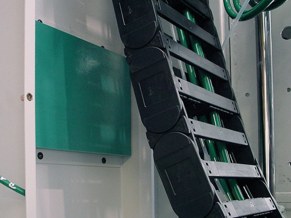 Veiligheidssysteem voor kabelsnijmachines in de automobielindu... Bij de bewerking van hoogspanningskabels voor elektrische- en hybride- voertuigen wordt de kop van de machine tegen de achterwand bewogen. Hier zor...