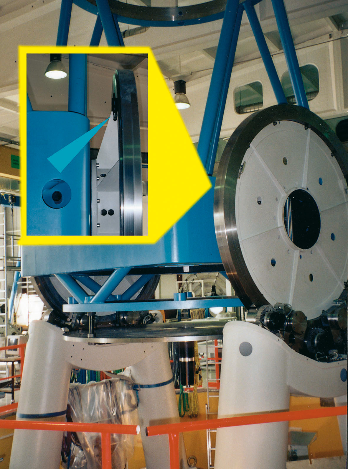 ACE industriestootdempers zorgen voor veiligheidsreserves bij het draaien en afremmen van een grote telescoop. Het optische systeem van deze telescoop voor speciale observaties is in twee dimensies beweeglijk. De 15.000 kg zware constructie waarin de telescoop is bevestigd, bestaat uit een draaitafel met aandrijvingen en twee gelagerde wielschijven. Deze maken het mogelijk de telescoop ± 90° te draaien - van horizon naar horizon. Om de telescoop tegen overschrijding van het zwenkbereik te beveiligen, worden industriestootdempers van het type ML3325EUM als remelementen gebruikt. Mocht de telescoop een keer onbedoeld buiten het toegestane zwenkbereik komen, dan wordt het waardevolle instrument door deze dempers betrouwbaar afgeremd.