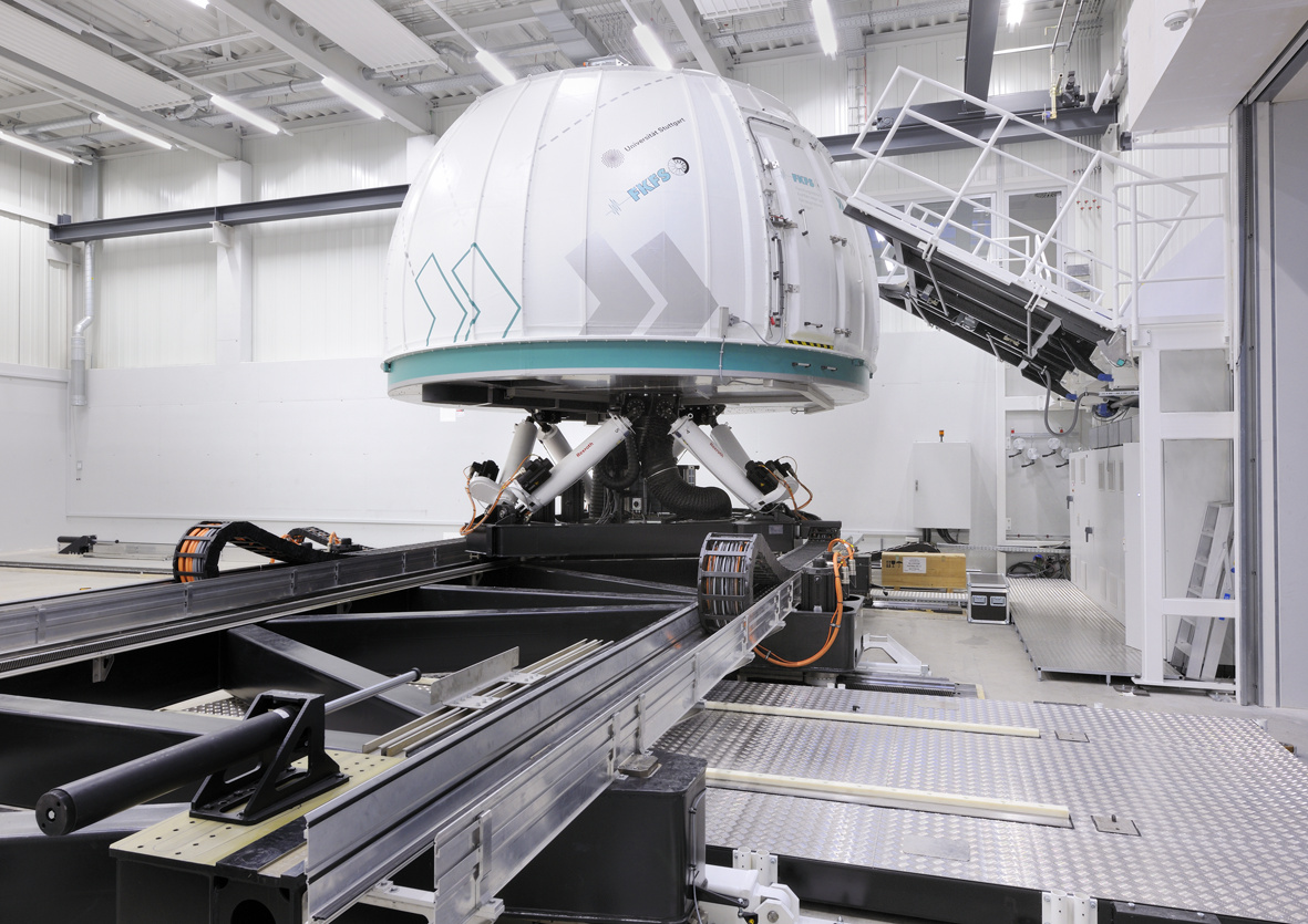 Het doel was om een rijsimulatiecapsule op twee van de in totaal acht assen te beschermen. De eisen aan een mogelijke noodstopvoorziening waren hoog, want het was duidelijk dat er, als deze niet werkte, ernstige schade aan de complete constructie en ook aan de capsule zou ontstaan. Zelfs persoonlijk letsel van de proefpersonen kon niet worden uitgesloten, terwijl bovendien de meest uiteenlopende combinaties van massa en snelheid in aanmerking moesten worden genomen. Twee veiligheidsstootdempers van de productfamilie SDH38 tot SDH63 nemen nu de destructieve krachten, bijvoorbeeld bij stroomuitval, betrouwbaar op en zorgen ervoor dat hoge risico's worden uitgesloten.